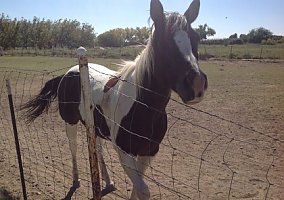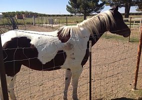 10 year old mare with outstanding paint horse markings. Black/sorrel/white and polka dots. Dual registered Paint and Pinto. She loves to show off her equine beauty. She'll take you to the mountains and down the ditch bank. Most of all she loves therapy with someone dressed in camouflage.