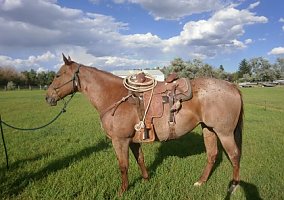 Ruby is an 11 year old mare standing 15.2. She has been heeled on at jack pots and college level. I have headed a few steers on her also. The last 4 years we have roped calves on her. She can really run and rates well and no jerk line is used. Ride out of box and drops head and then the grandkids can ride. Leave her turned out all winter and get her in saddle up and ride off. We have calves if you want to try her out. $7000, call 307-258-9***0, Casper Wyoming.
