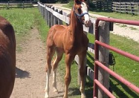 He was foaled June 11th 2015 with, in August he was branded and registered with the Canadian Hanoverian Society and received good commentary from the judges (no scores are given at this age @ Canadian Han. foal inspections) . January 7th he was weaned and turned out in a field with a couple of geldings.
