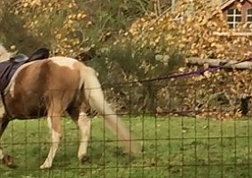 She a 14 hand Chincoteague pony who is great with children. She is a gentle soul who loves to come for apple treats. Misty of Bainbridge Island is her registered name. She is 10 years old. She has done some horse shows and jumps. She does best with voice commands. She has a cute trot and a good stop, no kick, bite or buck. She has all around good manners, standing for farrier and loads too.