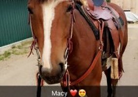 Moon Eyed Macy is a 3 year old coming this march. Macy was started under saddle June 2017 and was a very quick learner. Over the summer months she got many miles on the trails doing walk, trot and canter. Over the past few winter months she had some time off. She has been started up again this January and has been doing excellent ground work and lunging and also has been getting worked in saddle. Would be considered green at this point. Perfect age for someone to take her in any direction with training! Would be a great cattle horse and flashy enough for the ring! Please contact for any further questions.
