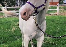 retains her training. Nettie has one blue eye, dark ears, and dark spots on her chest and hip. She is cow bred with reining, cutting and halter horses in her pedigree. Both parents are gorgeous and have great minds. If you are looking for a great, young filly to take you to the winner’s circle, look no further! Nettie is sweet, kind and so willing to learn. Take her any direction you desire.