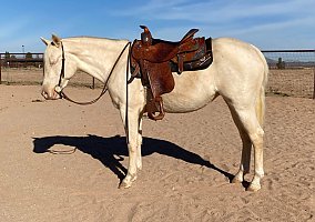 This filly is in professional training and has a great mind-set. She's stunning under saddle and going well, with shows in sight. Undoubtedly her pedigree and guaranteed gold production makes her an asset to any show and/or breeding program.