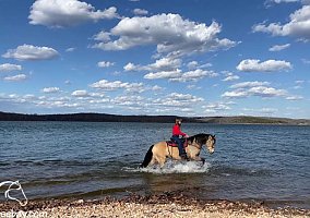 Open Bidding On Thehorsebay Dot Com along with more information including an UTD coggins, vet inspection, video, images, and the seller's contact information to ask questions, request information, and make arrangements to come visit. This is Lady Whimsey, and she is one Beauty To Behold. She stands 15.3 hands and is very muscular built. She is an excellent trail horse. She has an incredibly smooth gait that you can glide down the trail on. She also has a fantastic canter that is so much fun. She is a friendly and personable horse, and if she sees you in the pasture, she will walk right up to you for attention. She stands calm and patient to be tied, groomed, and bathed. She is excellent for the farrier. She will load and back out of any trailer that you ask her to. If you would like to see what an outstanding horse Lady is. Please take a look at her video. I promise you there will never be a dull moment. You will see her standing like a statue with no halter and bareback while I shoot balloons, stand on her waving a tarp, and twirl a large umbrella. You will see her riding by fire, semis passing her, riding thru the lake, dragging a six ft. tall float, riding thru open fields in her amazing gait and canter, and much more. You will also see a man riding her thru the trails and across the rivers while she carries him Safely and effortlessly through it all. Lady is the type of horse that you can look a lifetime for. You will not want to miss out on such a rare find. You are welcome to come and ride Lady for yourself and see what a wonderful horse she is.