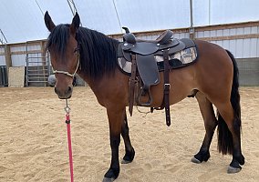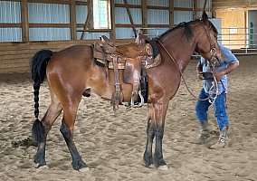 Zeke has had 60 days of training (still in training). Trainer says he is very athletic, soft in his face, has a good mind, could be trained for anything, has smooth gaits, flashy mover, been around cattle. He likes people and is easy to catch. He needs an experienced rider. Adopted when 10 months old. I'm over 60 years old and he has more energy than I want now.