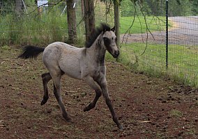 Fancy and floaty mover with Sect B National Champion sire. Voodoo is built beautifully with sweet and sensitive personality. All basic training being done to go at weaning. Born buckskin going gray.