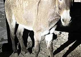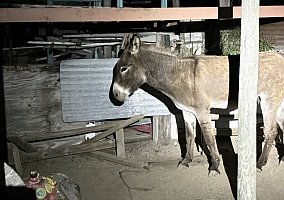 Now as far as age let me see…well about 21/2-3 years ago both donkeys showed up one nite. The dogs were barking n I looked outside n under a big mesquite I hv out front were the both of them laying down trying to sleep. I asked everyone around here. Reported them to the sheriff office in case anyone was looking they could claim them n I put out flyers. Never heard anything back so they stayed.