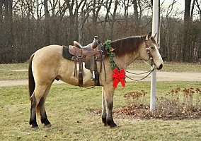 Introducing ‘Finn’ – This beautiful, Buckskin Draft Cross gelding is what any horseman/woman could ever want in a riding partner. Built solid 2019 model, standing 15.3 hands, along with a gentle demeaner, he has the perfect combination to excel and stand out in anything he does and whichever direction one may take him in. Finn has some of the most comfortable gaits – he rides like a Cadillac. Whether one trots around the ranch for miles or goes for a nice lope in the arena, you for sure will never have any discomfort for as long as you ride on him. His natural ability to self-carry himself with ease for sure has made him advance really quick in the upper levels. Finn has a very kind eye and reads into his handler at all times. He will put his best foot forward but will also listen to his rider for confirmation – a really nice trait to have in such a young horse. This is a gelding who will melt your heart and be a forever partner. Finn sells 100% sound. For more information, please contact Chris Yoder at (940) 255-6942. Located in Fort Atkinson, WI.