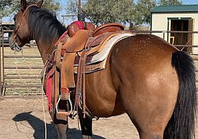 Bay ranch gelding rite off the Bass bros ranch near Ft Worth ,Tx broke to death and a veteran ranch gelding at any ranch job. Big and stout made , lots of cowboy manners. Good to shoe. Hauls the best in our ranch trailers. Sound in every way.