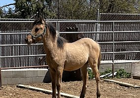 Kajika (Dragon x Sulphurs Canela Osa) colt. Leads, picks up all four feet, smart, responsive, respects personal space.
