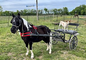 Pete is an adorable nine-year-old miniature horse. He has a thick mane and tail, with a beautiful black and white tobiano coat. Pete has such a gentle soul with an excellent foundation, experienced with trails, double riding, in the arena, bareback, obstacles, driving, dragging, cattle, and more. He would make a superior pony for any child. He is an extraordinary caretaker, staying relaxed and level-headed in every situation. He is super willing to try any task, great or small, with a sweet babysitter-type mindset. Pete quietly bathes clips, sprays, loads, tacks, and ties. He is UTD on dental and worming (4/3/23) and is great for the farrier. Pete has so much to offer and will make a great lifelong partner. He is a solid pony, the same every time you get on.