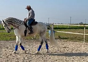 COMMENTS: Beautiful 2017 Grey Andalusian gelding under saddle. His ANCCE paperwork is on order. He is very appropriately suited to be an upper level dressage horse and he has FEI potential, good around other horses, spectacular mover in the arena, correct conformation and fantastic bloodlines. Stands in the cross ties, good for farrier and trailers well. Horse transportation can be arranged!