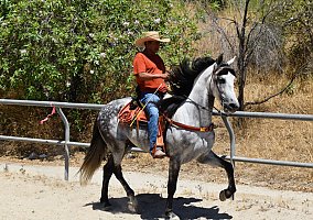 COMPADRE, 06/14/2014, Andalusian, Stallion, Grey, IALHA, 16 hh, Sired by Seductor EC x Querida RLLA. He has incredible movements, well broke under saddle, uncomplicated, walk trot and canter. Trail rides, rides in arena, no spook. Beautiful temperament, extremely calm, smart and willing. Stands quietly, cross ties next to others without any issue. Good ground manners no bad habits or vices.