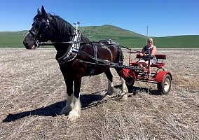 Hard to find registered Shire gelding. Sweet, gentle, drives single or team. Was used swing in a 6-up show hitch. Current on all vaccinations. Teeth floated June 2023. Loads easily. Stands, trims and shoes for farrier without stocks. Friendly, easy to catch. First to the gate when called.