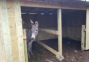 Daisy has been in 1 parade and 1 church Christmas event. She is good with the farrier and kids. Dogs she don't like. Likes our mini's. She is healthy and sound. Has a good mine.