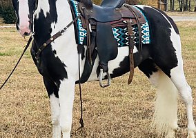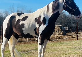 She is a STOUT made mare. She will stand 16.2 and has an amazing puppy dog personality. She was shown this year by a young girl who won the 17 and under youth council at the SHEBEA World Show and won the 4 year and older spotted pleasure class. Besides the show ring she has tons of experience in the woods. She will cross over logs and will go through water and cross ditches with NO PROBLEM.