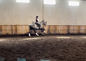 Kiernan is a smart, sensitive, forward ride. Hes adjustable, soft in the snaffle and very receptive to leg and seat ques. He’s currently solid first level and his training will continue to progress over the spring. He enjoys hacking by himself or with others, travels great and is very low drama to have in the barn. Hes an absolute delight to be around. His puppy dog/best friend personality is paired with athleticism and comfortable well balanced gaits.
