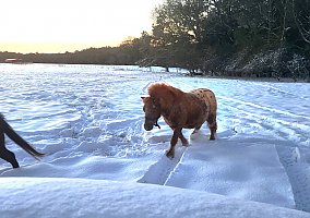 Loves people, dogs, cows and mares.