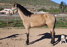 COMMENTS: 17.2 hh Pure Andalusian Buckskin gelding, super tall prospect for dressage or working equitation, lots of potential, noble character, impressive bloodlines, registered and papered, correct confirmation, bautiful neck, great personality and beautiful movement. He knows all his basic ground work, stands in the cross ties, easy to handle and can load on the trailer fine. Horse transportation can easily be arranged.