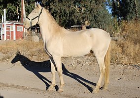 Stunning rare creamy color coat, incredible temperament, fabulous movements, very baroque, strong classic type, well broke under saddle, walk, trot, canter, goes on trails alone or with others, amateur friendly, easy to ride, easy to lunge, respectable ground manners, super mellow, wonderful temperament, ties and loads in a trailer easy. Shipping cross country can easily be arranged!!!