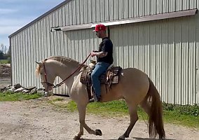 Very expressive & big mover, correct conformation, started under saddle, walk, trot, canter, goes on trail, easy to ride, easy to lunge, respectable ground manners, wonderful temperament, gorgeous and kind, stunning in color and personality, ties and loads in a trailer easy. Shipping can be arranged!