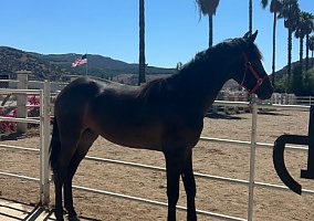 COMMENTS: CARTUJO is a 2024 Bay Andalusian colt, sire is a imported perlino, dam is a buckskin mare, good breeding, he has a good conformation, lovely character, has been handled regularly, ties and baths, great movements, future dressage prospect or trail riding horse. Horse transport can easily be arranged.