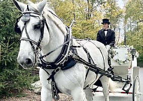 Sultan drives ANY WAY… team, 3, 4 and drives SINGLE like the best! Years of experience doing weddings, funerals, and special events. He just finished Christmas rides this December! He will make a wonderful driving or riding horse for weddings or perfect partner to drive/ride through the country side.
