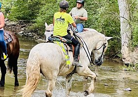 Sensible Handsome Grey 18 hand, 16 year old Percheron Gelding with a ton of heart and majestic presence. He has been there done that and has the t-shirt to prove it! Was lead horse at farm purchased from in his younger years and he is an awesome lead horse for our carriage company who carries himself regally and is as hard of a worker as they come! He is BROKE TO RIDE TOO with miles of trail ride experience!