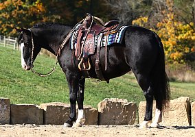 He’s black and he’s beautiful!! It is our pleasure to introduce you to this SWEET gelding named Fred. He is a 7-year-old quarter horse that stands 15 hands tall, the prefect size for anyone. With his sweet personality he aims to please in whatever is being asked of him. Whether you are looking for a horse to take on a Sunday afternoon ride or on a weekend ride on the trails, Fred will do both with a willing attitude. He will ride through water, over bridges and go wherever you point him. Fred has been on busy state routes and small country roads, traffic does not faze him. You can ride Fred either English or western and he will walk, trot, canter and change leads. With his easygoing personality you can ride him once a week or once a month, it will make no difference to him. He is broke the best and will fit in anywhere and is also UTD on all his shots and dewormer.