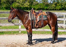 Miss Lena is looking for her special person! She is a 2018 model bay Friesian/Quarter Horse cross mare and stands 15.3 hands tall. She is the perfect age to still carry you for years but has already surpassed all of the silly business of a younger horse. Not only does Lena ride the very best, she also drives like a dream. She is traffic safe whether you ride or drive her on the road. Lena is a thick made mare who can easily carry all sizes of riders. If you enjoy grooming, and dolling up your horses, Lena is your girl. Her mane and tail give off Rapunzel vibes. She enjoys having them both brushed, and stands like a statue to have them braided up. My wife has enjoyed practicing all the different types of braids she knows, while Lena patiently stands tied. She also likes to be bathed and stands well for it as well. Lena is suited for almost all types of riders, since we have not found a single thing, she spooks at. She is safe to ride out alone, with a group, or in an arena full of riders who don’t know what personal space is. She deals with being at the front, middle, or very back of the group with no fuss. Lena has been used to pony other horses, and does not mind being used to teach younger horses to lead quietly and easily. She is a fancy mover, with her floaty trot and lope. She picks up both leads easily at a lope naturally. For a thick made, big-boned lady like her, she has a nice turnaround. She is soft in the bridle, and responds nicely to your leg cues. She has an almost automatic side-pass when given the cue. Lena has been used at ranch rodeos, along with countless hours on ranches day-working. She is no stranger to a hard day’s work and will still have a pleasant attitude at the end of the day.