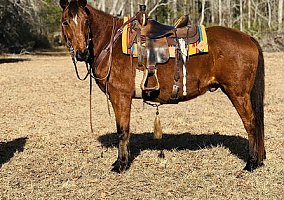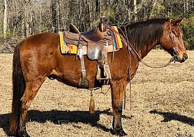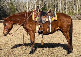 Cherokee” is a grade, 14 year old, quarter horse gelding that stands 15 hands and stocky built. This guy is the true meaning of a trail horse deluxe. Cherokee will literally go anywhere you ask him without putting up a fight. He stands quietly to be tacked up, easy to bridle and loves to be groomed. Cherokee will cross ditches, walk through mud puddles, rides in mud, over hills, through our obstacle course, over the bridge, in thick brush, traffic safe and over logs. He has a very comfortable jog and lope. Cherokee neck reins, backs and has a great stop. (Rides in a D ring snaffle bit) He is not spooky and very easy to handle. His previous owner used him to Deer hunt. (shoot deer off his back) The only reason he is for sale is because his previous owner is an elderly man that needed back surgery and can no longer ride. Cherokee is the absolute easiest horse to get along with, laid back and very easy going. We haven’t found anything to spook or rattle this big guy. He rides with or without a group and is NOT barn sour. He loads well and backs off with ease. This guy has amazing ground manners and just a pleasure to be around. He can be a little hard to catch but shake a bucket and this fat guy can’t resist. Cherokee is NOT and will NOT be your next barrel, lesson, play day or arena horse he does not enjoy arena work. He will tote your husband, grandma, grandkids ect with no fuss. Please talk to your husband, wife, grandma, aunt, trainer or the keeper of the money before inquiring. Please come with cash, trailer or shipping arrangements in mind. We will NOT hold without a non refundable deposit placed and it will be 15.00 a day up to two weeks. We can deliver for a fee. PPEs are always welcome at buyers expense and vet of your choice. If you don’t have a local vet you are welcome to use ours. Don’t pass this guy up if you have been looking for your next forever Trail Mount. He is the kind!!!