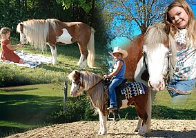 Stormy is a registered American miniature horse, and he is an outstanding gelding pony. He stands 41 inches tall. He is one of the coolest ponies, I believe, I’ve ever seen. Stormy is a beautiful red & white paint that has a tail dragging the ground. Not only is he a looker, but Stormy also has the humblest, most loving personality. Stormy is a pony that makes the little kids want to ride & enjoy every second. He has been trail ridden all over Kentucky. He will ride alone or with other horses. Don’t let this guy’s size fool you, he has the heart & soul of a big horse. He will stay right along the big horses all day. He will cross water; logs go up steep hills & down. He’s been ridden in the rings & arenas as well. Stormy has been a confidence builder for the little ones to learn from. He’s a perfect lead line pony. He’s the best starter pony for the little ones learning how to ride, as he is patient & listens to what they ask of him. He’s taught our little niece so much about the love & passion of horses. He has been an absolute dream pony here. He loads & unloads from the trailer. Stormy also pulls a cart. He stands to be bathed, brushed & to clean his hooves. Stormy has been worth his weight in gold. He has decided it’s time to let another little cowgirl or cowboy enjoy him & for their dreams of owning a cool pony to come true!