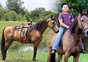 Rip is a beautiful 11-year-old KY mountain buckskin gelding. Standing at 15.1 hands tall. He’s the total package- well-mannered, dependable, and has the looks! He’s built to last, with a heart and mind of a true trail partner. Rip has plenty of experience on the trails and will go wherever you point him- through water, over logs, up or down steep hills. He’s surefooted, confident, and never in a hurry unless you ask him to move out. Rip rides out alone or in a group, leads or follows without issue, and isn’t bothered by traffic, dogs, or wildlife. On the ground, Rip is gentle and respectful- easy to catch, saddle, bridle, load, and stands quietly for mounting, farrier, and grooming. He has a kind eye, a good brain, and a steady personality that makes him enjoyable for just about anybody in the family. If you’re looking for a safe, seasoned trail partner with a willing heart, Rip is your guy!