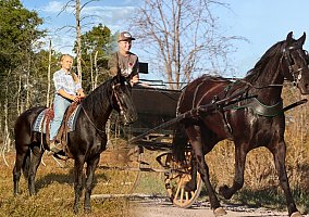 A Good Reputation is her registered name we call her Java and she’s living up to her name she’s making a good reputation for herself. She’s broke both to ride and drive and she’s even started on the lay down cue! She is a Friesian Morgan registered through the Friesian Sport Horse registry. Standing at 16.1 hands tall and stout she can easily carry a taller rider and can pull a bigger cart.
