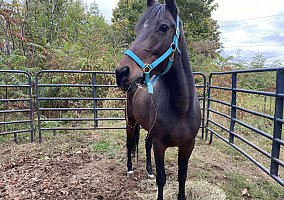This is Lightning, a 12-year-old about 15hh Bay Standardbred gelding (according to the previous owner). I was informed that he was used as a camp horse, but he had been stalled and out of work for a while before I got him. He does ride but would benefit from an experienced rider due to some anxiety. I was also told he has been trained to drive, though I haven’t tested or seen that myself since I purchased him for riding. I’ve been focusing on improving his ground manners, and he’s been doing really well, although he can be a bit testy and sometimes shows a little attitude. I was hoping for a horse I could easily hop on and even put my kids on, but he’s not that kind of horse just yet. He truly tries, but after working with him for a while, I’ve realized he’s a bit more than what I anticipated. Lightning would be a great fit for someone with more time and experience to dedicate to get him a little bit more worked. Feel free to text or message me with any questions! Send me an offer!