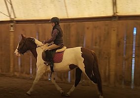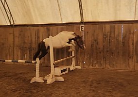 I was told she turned 4 in August, and her teeth confirm that she is a young 4yr old. I measured her at 13.3h, however she is higher in the hind quarters so she should still grow a bit. Since owning her she has started into my training program. Dedee currently lunges; ground drives, is green but going very nicely walk trot and canter under saddle. She has done trotting poles, small cross rails and verticals and seems to be very honest and willing. She has been out on some hacks and even rode in a schooling show on the property. She is in consistent work with children and small adults. Dedee is very level headed, not spooky, or hot.