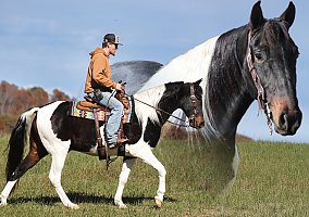 Bourbon is a well built, 15.1hh, 5 yr old, Black/Bay and White Tobiano Gelding! Bourbon has been owned by and older gentleman here in the county since he was 2 years old. Bourbon has been ridden lots of miles with the local saddle club and has been on weekend camping trips with friends to surrounding states. He has been the perfect horse for this 60+ year old gentleman but due to two knee replacements and some serious health issues, his riding time has been significantly reduced this summer. Bourbon is a great horse that is going to make someone very happy! Bourbon is a horse that you can take to a Saturday night fun show get you a ribbon! He is as smooth as any horse that you will set on! He has a natural runwalking gait where he will shake his head and will also Rack, both of which are very smooth! He has been ridden around farm equipment, ATV’s, over large noisy tarps and has also had guns shot off of his back. On the trails he is always great! Bourbon has been exposed to all kinds of wildlife such as deer or turkey or other animals like cows or dogs and will go anywhere that he is asked too. He has been ridden many miles in the mountains of Eastern Kentucky and encountered every obstacle possible on the trail. He will go up or down even the steepest slopes, across deep creeks, over downed trees, and over all types of rough terrain while still being sure footed. He has been ridden in traffic, and is very traffic safe around cars, semi, log, and dump trucks. He has a great personality and a great attitude about whatever he is asked to do. Horses like Bourbon do not come along often so don’t miss him!