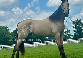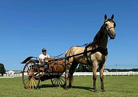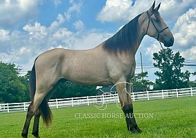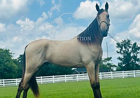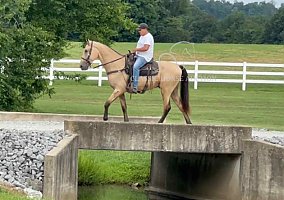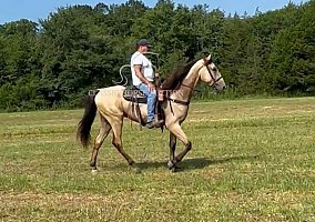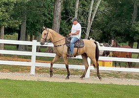 Ranger is a striking registered Tennessee Walking Horse gelding, standing 16.1 hands tall with a beautiful buckskin coat. Hand selected and started here at Leatherwood, Ranger has been brought along the right way with a calm, cool, and steady foundation for a bright future.