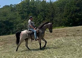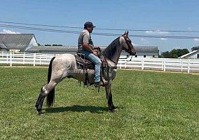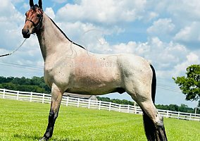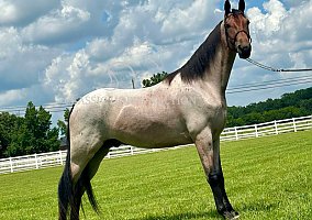 Colter is a registered Tennessee Walking Horse gelding, standing 15.2 hands tall with a standout bay roan coat that makes him a barn favorite. His unique color, paired with a willing attitude and strong foundation, makes Colter a top pick for anyone looking for a dependable and eye-catching trail companion.