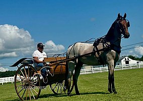 He offers a naturally balanced canter that is already smooth and collected, and one that will only continue to improve with age. In addition to his under-saddle work, Colter also drives and hooks up nicely, adding versatility to his resume and value to his training.