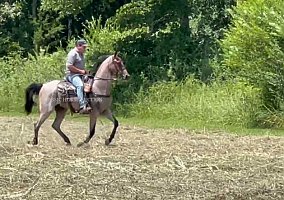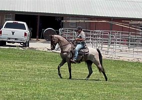 Colter has been thoughtfully brought along at Leatherwood with a steady training foundation. He parks out and steps right up to the mounting block, making saddling up easy and smooth. He has been exposed to a variety of farm life, including tractors, ATVs, and playful kids, and takes it all in stride.