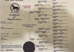 Stan is sired by Jester’s Charming Legend, a six-time MFTHBA Top 5 Stallion whose offspring include multiple World Grand Champions like Oh Yeah, Charming Millie, and Time to Tango. His dam, Fax Anne, was officially inducted into the MFTHBA Hall of Fame in 2025, known for her incredible heart, smooth gait, and willingness in the show ring and on the trail. Together, this cross blends beauty, brains, and the signature Fox Trot smoothness that makes every mile enjoyable.