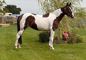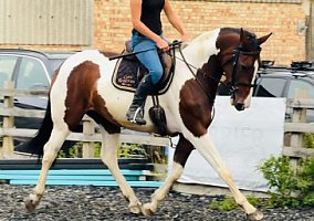 Striking Irish 2020 coloured mare standing at 15.3hh offering a lovely, safe, quiet ride. Melody has a soft snaffle mouth, she will work in a nice rhythmic frame in all three paces and has a lovely attitude, she’s safe, a leg on type and easy. She moves nicely and would be a nice sort to produce for the dressage boards. Jumping wise she has a lovely technique, shows great scope and willingness, bold with fillers and a genuine attitude. She’s a forgiving ride, extremely laid back and quiet, isn’t worried if your lower leg swings around or you become unbalanced. Melody is a sweetheart to hack out, she will happily go solo or with friends and she is utterly unbothered by heavy traffic and machinery, fast moving vehicles etc, she is a brilliant little mare to hack out and will walk out on the buckle. She’s a lovely started allrounder and a real safe, quiet attitude, open to any vet or trainer