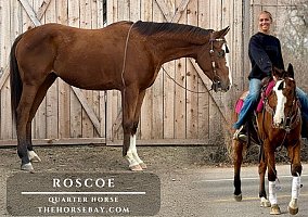 Having experience in a variety of disciplines, Roscoe boasts an impressive western pleasure jog that anyone can sit, a rocking horse lope as well as an exceptional stop, smooth rollbacks, and even has the beginnings of a reining pattern. Completely voice-trained, he responds well to leg cues and features a handy spin and side pass.