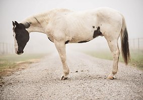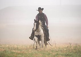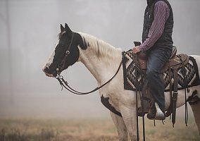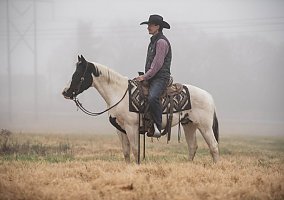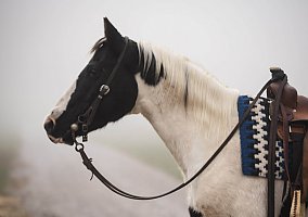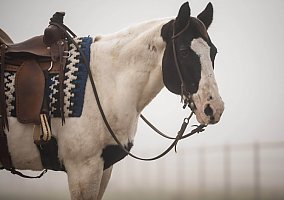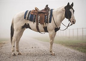 Comanche will stand for a bath and grooming. Tacks up great, saddle up and go. Point and go type.