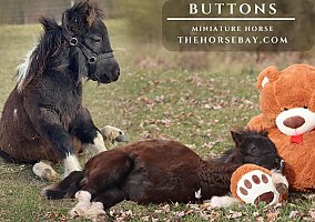 We own her mom and know her dad both parents are babysitter ponies that ride and drive and they have super quiet laid-back temperaments. And Buttons is taking right after both parent’s dispositions. She should average anywhere from 34″-38″ tall when full grown. Her Mom is about 34″ and dads about 38″ tall. Buttons also gets along out in a herd she is in with other ponies, and she is low of the pecking order.