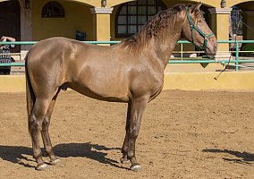 COMMENTS: He is a vey noble horse with an extraordinary temperament, baroque style and is morphologically very correct. Top quality, outstanding movement, ready to excel, prospect for dressage or working equitation. Exotic isabelo champagne color coat, double pearl genes, ANCCE revised, fantastic bloodlines, sire is imported from Spain. Horse transportation and coggins can easily be arranged.