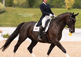 Fabienna GV is a 2013 17h Westphalian mare by Fackeltanz OLD out of Antigua Mt by August Der Starke. Fabienna is a striking black mare with four white socks that will catch any judges eye.