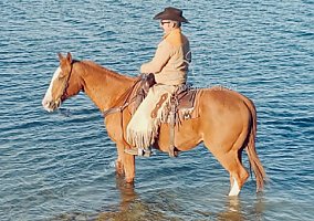 Scooby is one of the most all-around outstanding individuals you could ever find. Every so often in your life you’ll get lucky enough to find that truly special horse. Scooby is definitely that horse! He is the kindest, sweetest horse that just loves people and affection. Scooby is an absolute gentleman with impeccable manners and is always such a pleasure to do anything with. He is a top-notch trooper on the trails and has been shown at the open shows, 4H and ranch horse shows. I have also used him to pony colts and the show horses. Whatever job you have on horseback, Scooby is your go to companion. Scooby is the perfect horse to teach and mold your child into a great, correct young rider, and he will even take care of grandma when she wants to go out for an enjoyable, safe ride with the smoothest jog and lope you will ever sit. Scooby is a true insurance policy that the whole family will love and enjoy. If you want safe, broke and dependable, Scooby is your guy!
