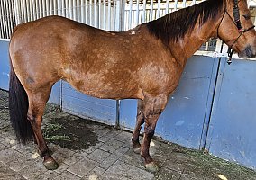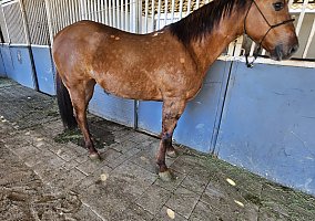 COMMENTS: 2019 Dunskin Buckskin AQHA mare, trail riding, well broke under saddle, super quiet and easy to handle, easy to ride, goes walk, trot, canter, pleasure riding, rides on streets, gorgeous and kind. She has excellent ground manners and well behaved with other horses. Horse transportation can easily be arranged.